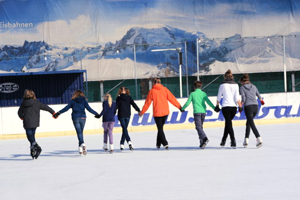 Rückwärtslaufen. Wir spielen Ringhockey oder versuchen uns an kleinen Sprüngen und Figuren des Eiskunstlaufes.